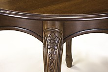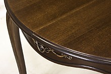 Стол Линда-14 - классический раздвижной обеденный стол с круглой столешницей, из натурального массива бука. Подойдет для квартиры, гостиницы, кафе, ресторана. Будет хорошо смотрется в помещениях с небольшим метражом. Стол имеет четыре изящные резные ножки криволинейной формы с декоративной резьбой по всей длине. Царговый пояс стола имеет декоративные элементы. Стол будет удобен при повседневном использовании на кухне и будет незаменим для праздничного застолья, благодаря наличию раздвижного механизма. Характеристики Высота стола h = 750 мм Размеры столешницы d = 1050 (1050x1410) мм Тип ножек Нога D Форма столешницы Круглая