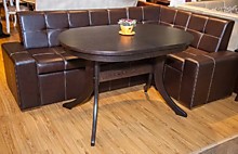 Овальный стол для кухни. Материал: ножки массив бука, столешница – МДФ облицованная натуральным шпоном дуба или бука Механизм трансформации столешницы: синхронный Механизм трансформации вкладки: бабочка