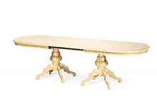 Стол Бостон-2 2000 - раздвижной обеденный стол из массива бука с овальной столешницей. Подстолье стола выполнено в виде 2 ножек-балясин кувшинообразной формы. Каждая ножка имеет четыре резные лапы. Стол отличает множество изящных резных элементов и орнаментов на ножках и царговом поясе. Идеально подходит для просторных помещений - кухонь, гостиных, ресторанов. Также, наша фабрика выпускает аналогичную модель - обеденный стол Бостон-4, имеющий аналогичные размеры, но без резьбы по царговому поясу. Характеристики Высота стола h = 750 мм Размеры столешницы 1200 (1550) х 820 мм2000 (2750) х 1000 мм Форма столешницы Овальная