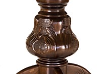 Стол Бостон-2 - раздвижной обеденный стол из массива бука с овальной столешницей. Стол отличает множество изящных резных элементов и орнаментов на ножке-балясине и царговом поясе. Подстолье стола выполнено в виде кувшинообразной балясины с четырьмя резными ножками. Идеально подходит для просторных помещений - кухонь, гостиных, ресторанов. Также, наша фабрика выпускает аналогичную модель - обеденный стол Бостон-3, имеющий аналогичные размеры, но без резьбы по царговому поясу. Характеристики Высота стола h = 750 мм Размеры столешницы 1200 (1550) х 820 мм2000 (2750) х 1000 мм Форма столешницы Овальная