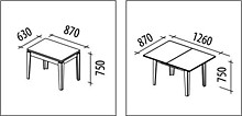 Размеры модели: - 870х630х750 мм; -1260x900x750 мм. Цветовое исполнение: -Ясень Шимо темный/Дуб Кобург, Сосна Астрид, ВенгеМатериалы: -ЛДСП 16 мм; - кант ПВХ 2 мм и 0,4 мм; Особенности модели: -увеличение столешницы вдвое с применением поворотного механизма;-глиттерный рисунком на царге;-шпингалет для фиксации столешницы.