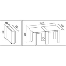 Стол-книжка «Колибри 14» – модель, которая идеально подойдет для малогабаритных квартир. Преимуществом модели является практичность и компактность. Стол может быт использован в нескольких положениях:в собранном виде (ширина составляет всего 23 см) – качестве подставки или тумбы в собранном виде;в разложенном положении – как стол, за которым комфортно сидеть гостям от 6 до 8 человек.Надежность и устойчивость конструкции обеспечивают 4 дополнительных опоры.2. Технические характеристики: Размеры модели: • 230х850х760 мм; • 1650х850х760 мм. Цветовое исполнение: • дуб «Кобург» / дуб «Сантана»; • дуб «Венге» / сосна «Астрид»; • дуб «Сонома»; • ясень «Анкор». Материалы: • ЛДСП 16 мм и 22 мм; • Кант ПВХ 0,4 мм и 2 мм. Особенности модели: • скругленные углы столешницы; • два положения стола; • ножки стола и опоры обеспечивают надежность и устойчивость конструкции.