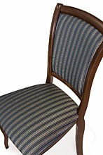 Кабриоль – стул столярной неразборной конструкции из массива бука. Спинка стула мягкая, изогнутая по радиусу. Стул имеет изящные передние ножки криволинейной формы. На передних ножках, по периметру царгового пояса художественная калевка. Характеристики Высота сиденья 480 мм Размеры (Ш х Г х В) 460x430x900 мм
