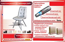 Уникальный дизайн. Инновационное покрытие каркаса стула: хром-лак. Продукция изготовлена на швейцарской конвейерной линии GEMA, с применением роботизированной сварки FANUC.